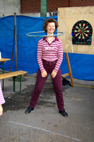 Franz überreicht Beatrix den Pokal für den Sieg bem Quiz-Spiel