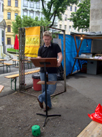 Gemeinderat Siegi Lindenmayr verfolgt aufmerksam die Versteigerung
